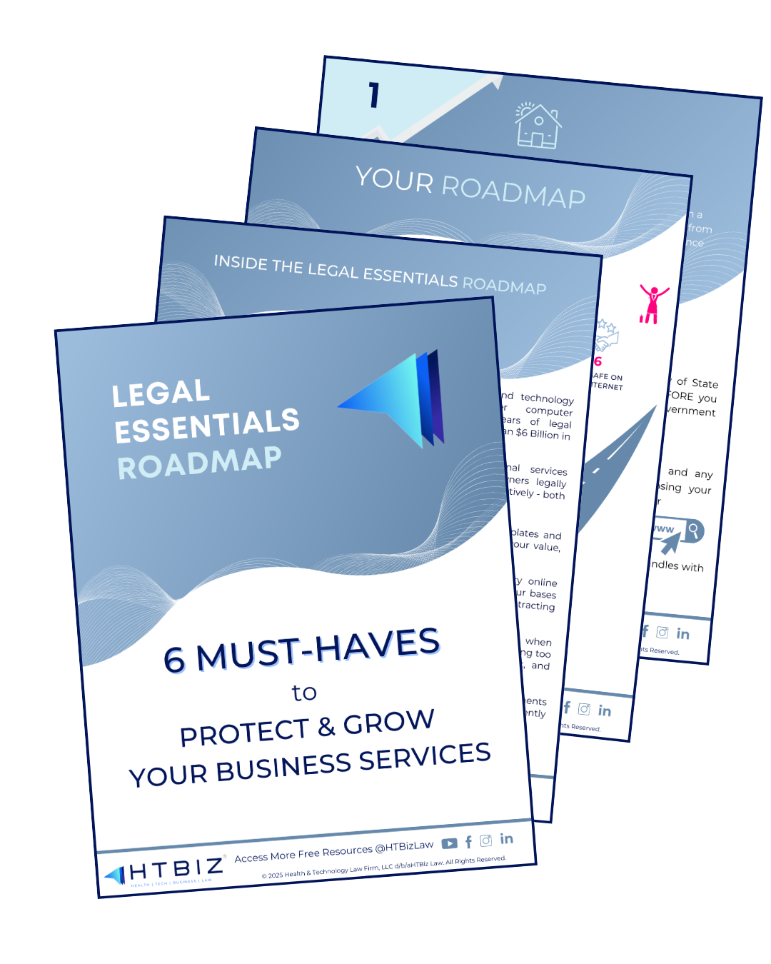 Download the Legal Essentials Roadmap and learn the 6 must-have foundations every service business needs to protect revenue, content, and client relationships.
